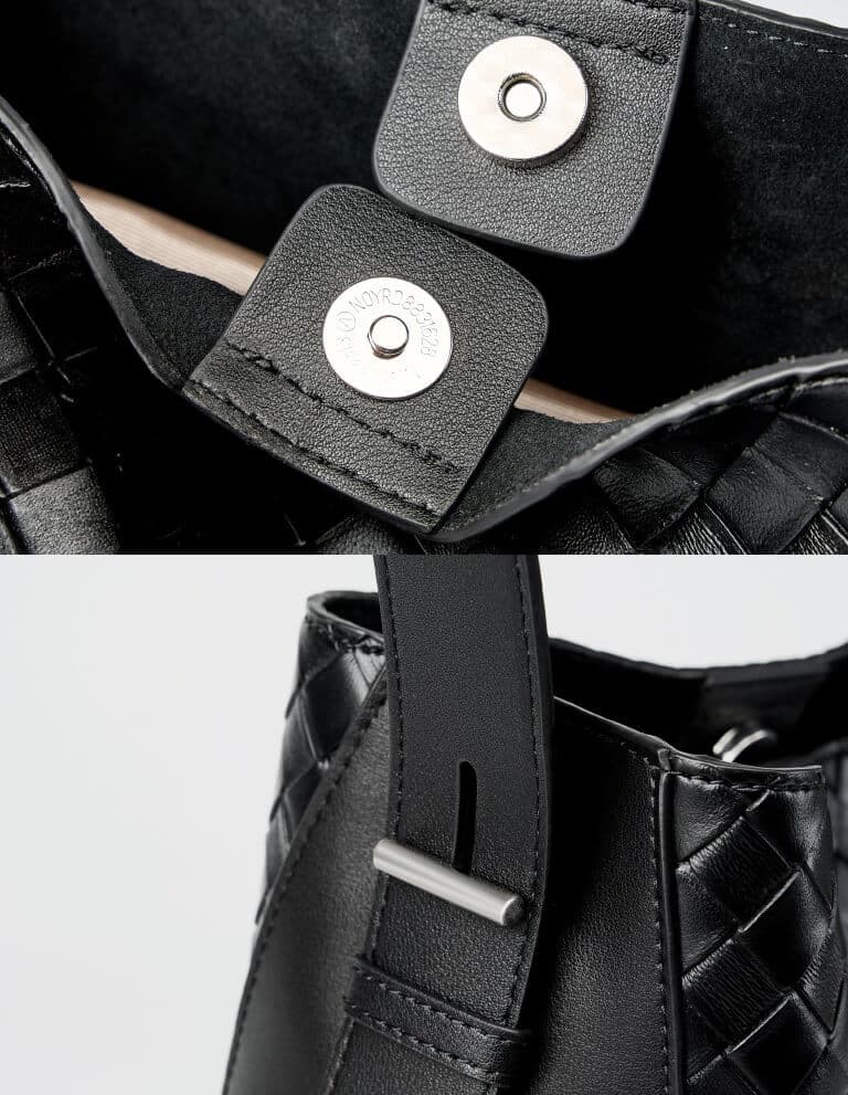 Crafted from high-quality cowhide leather, it features intricate woven detailing that adds a touch of sophistication.
