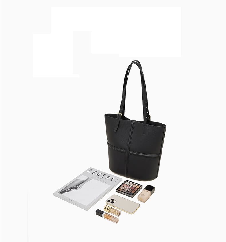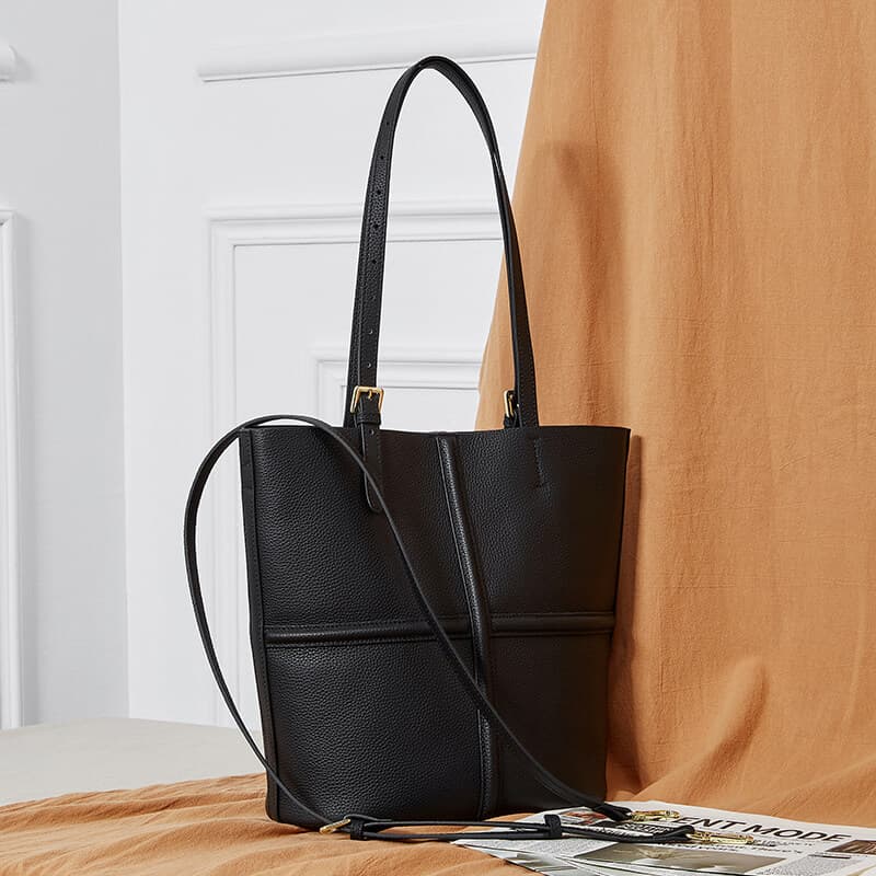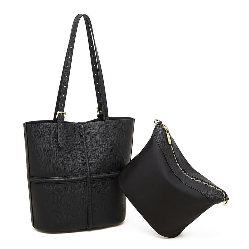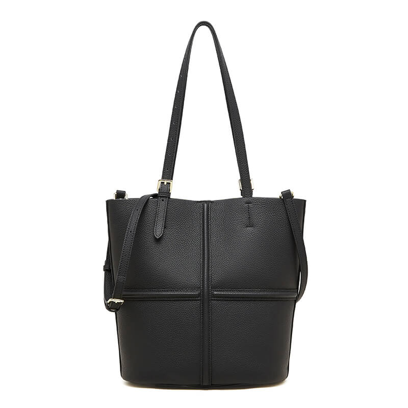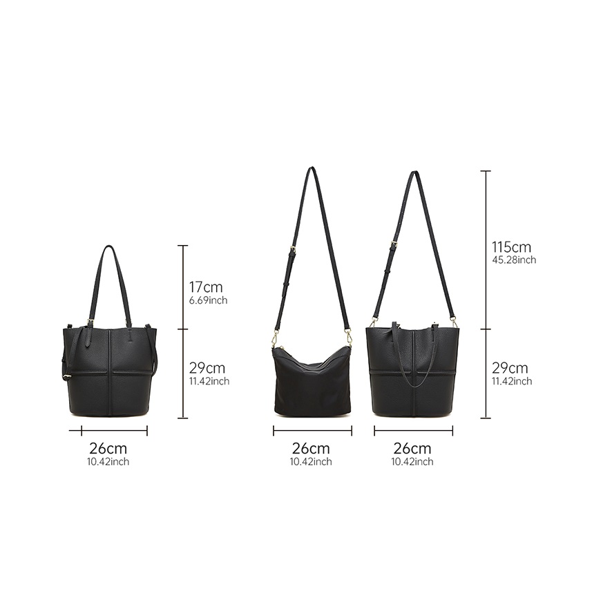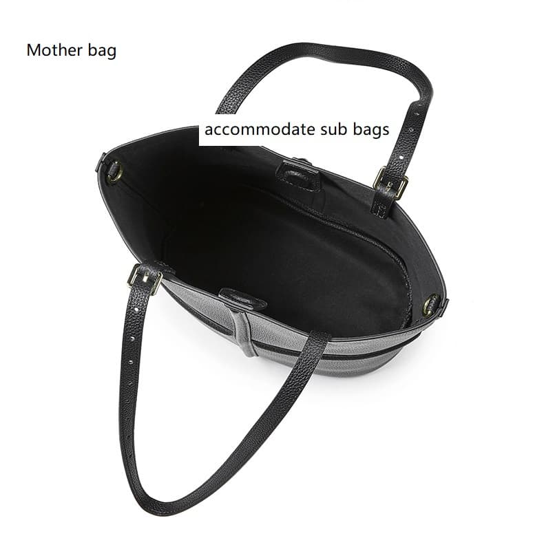 Classic Black Cow Leather Cross Sewing Mother & Sub Bucket Bags