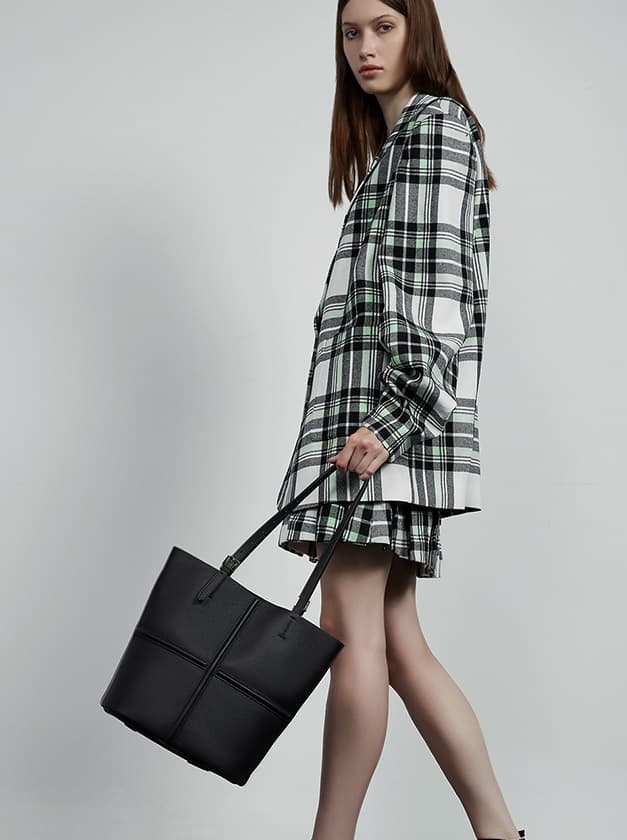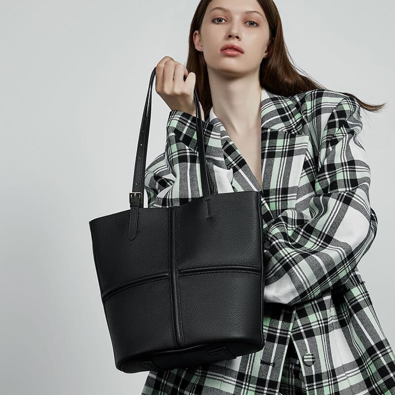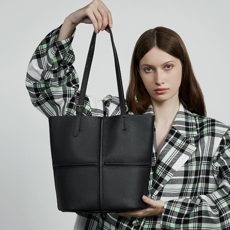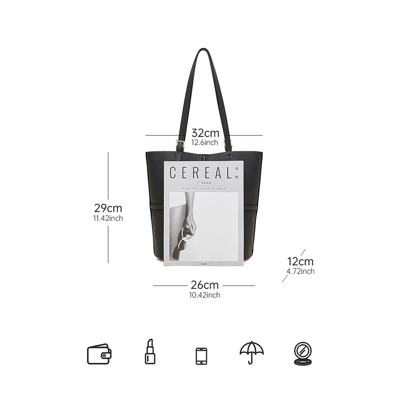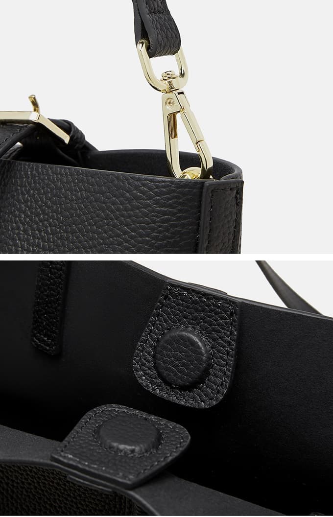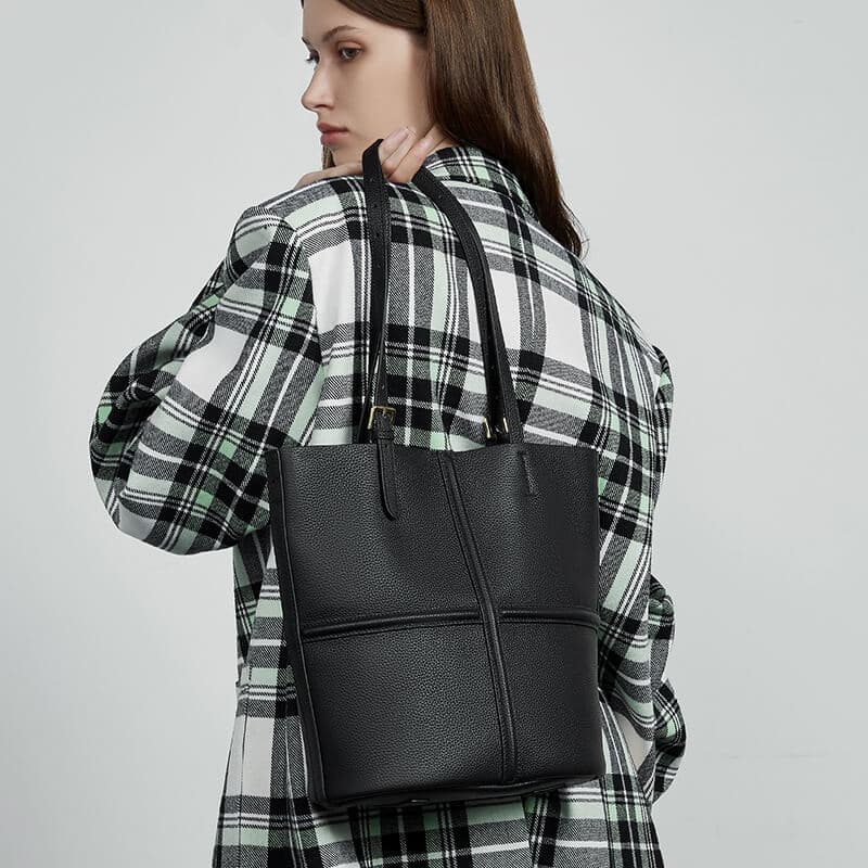 Classic Black Cow Leather Cross Sewing Mother & Sub Bucket Bags