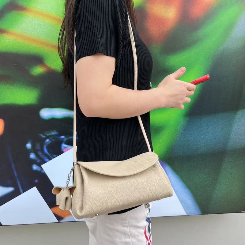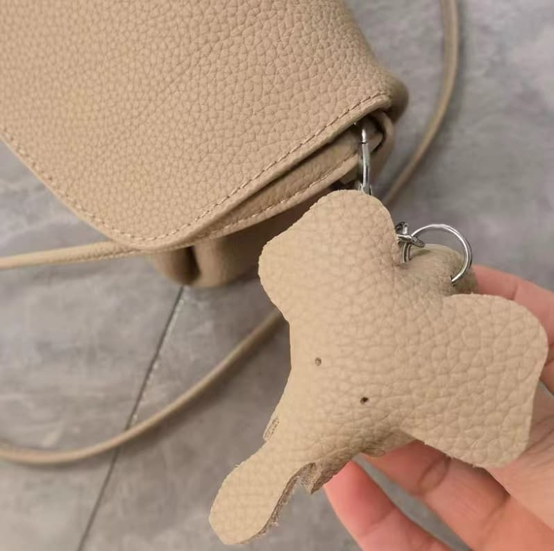 This women mini bag has a removable small leather elephant ornament which hanging on the shoulder strap.