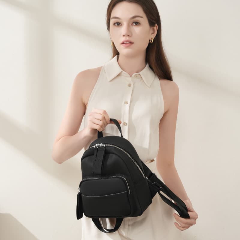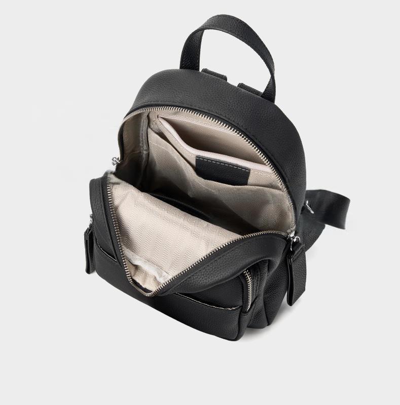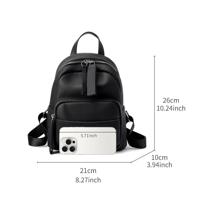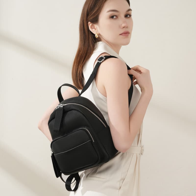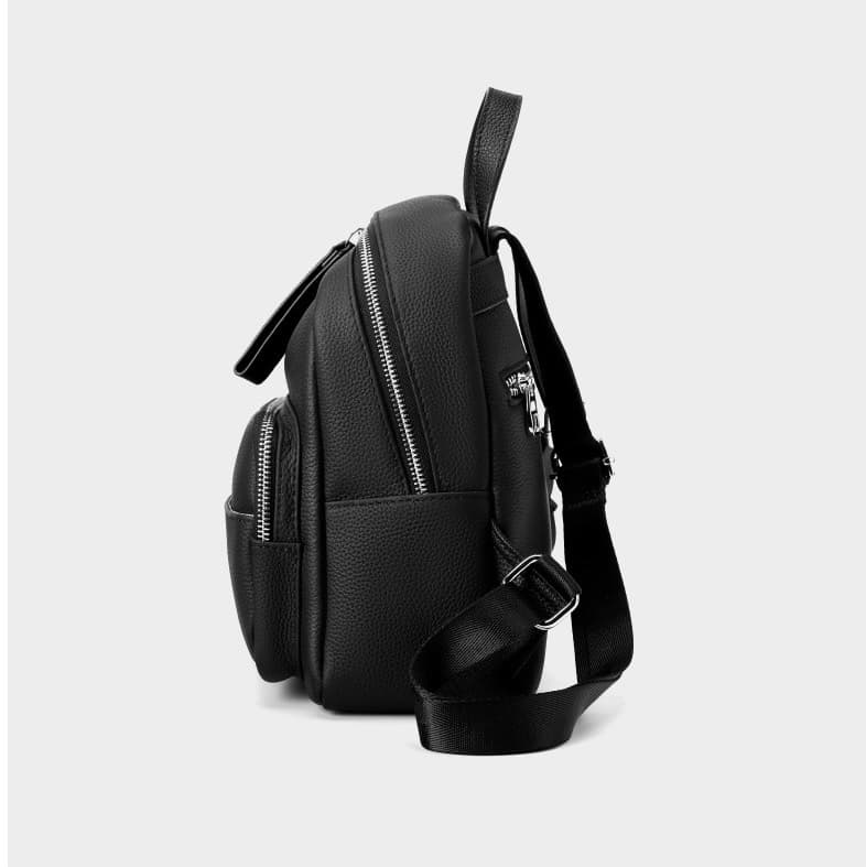 This chic black cow leather leisure backpack combines elegance with practicality, making it perfect for everyday style.
