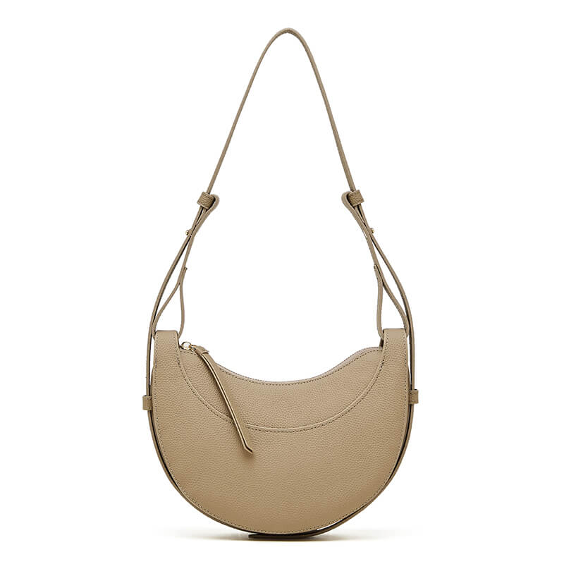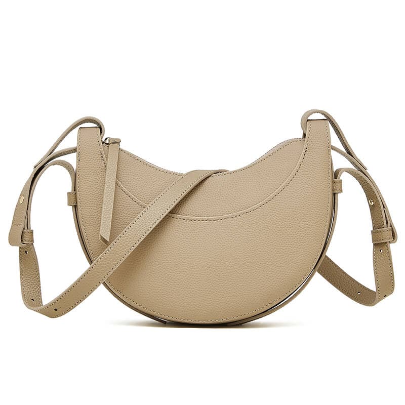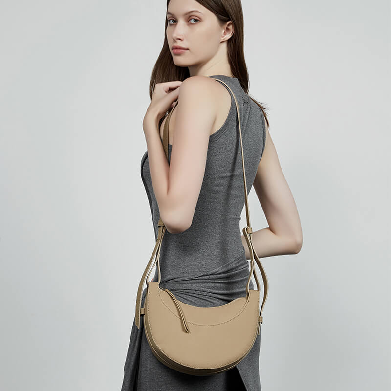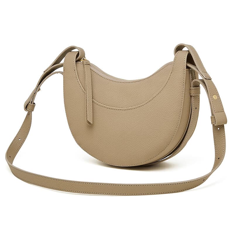 Khaki Saddle BagFashion High Quality Khaki Cow Leather Crescent Saddle Crossbody Bags