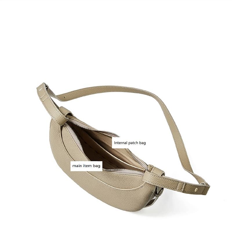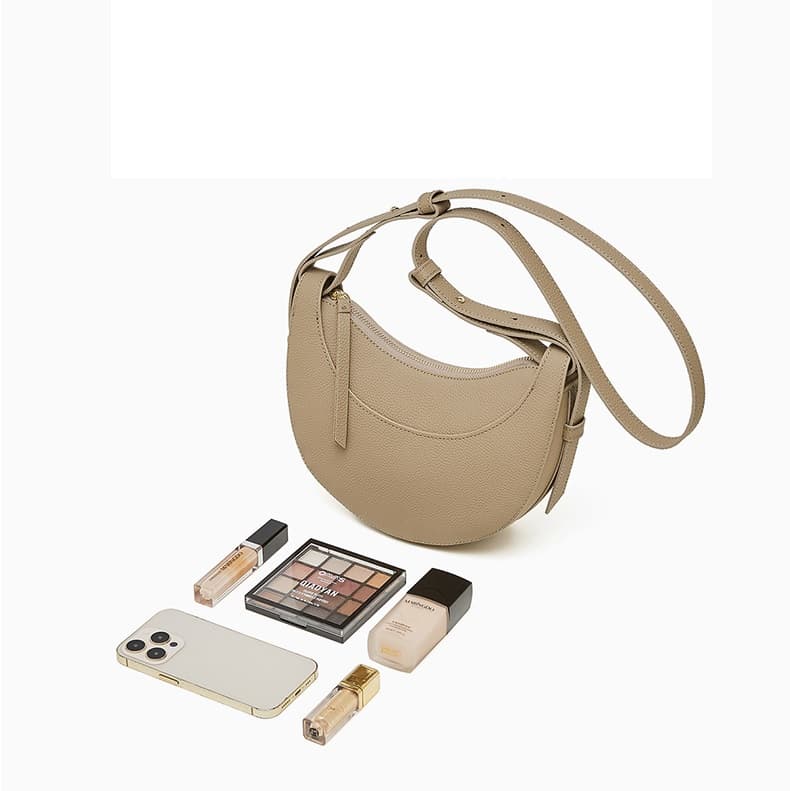 The crescent-shaped design and adjustable strap ensure comfort, while its spacious interior keeps your essentials organized.