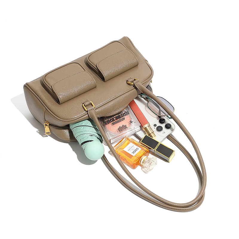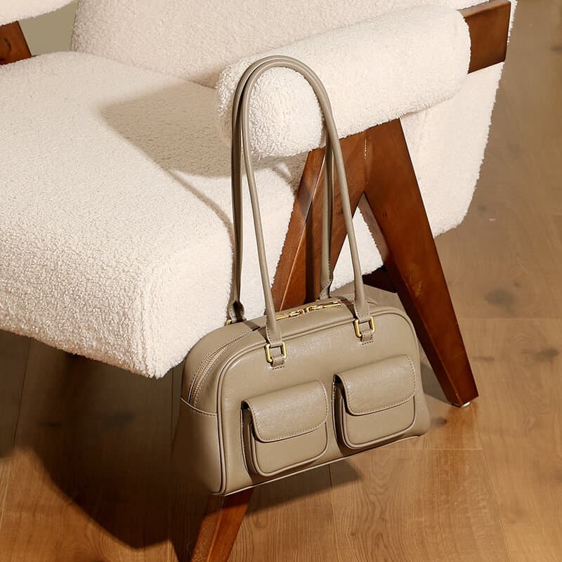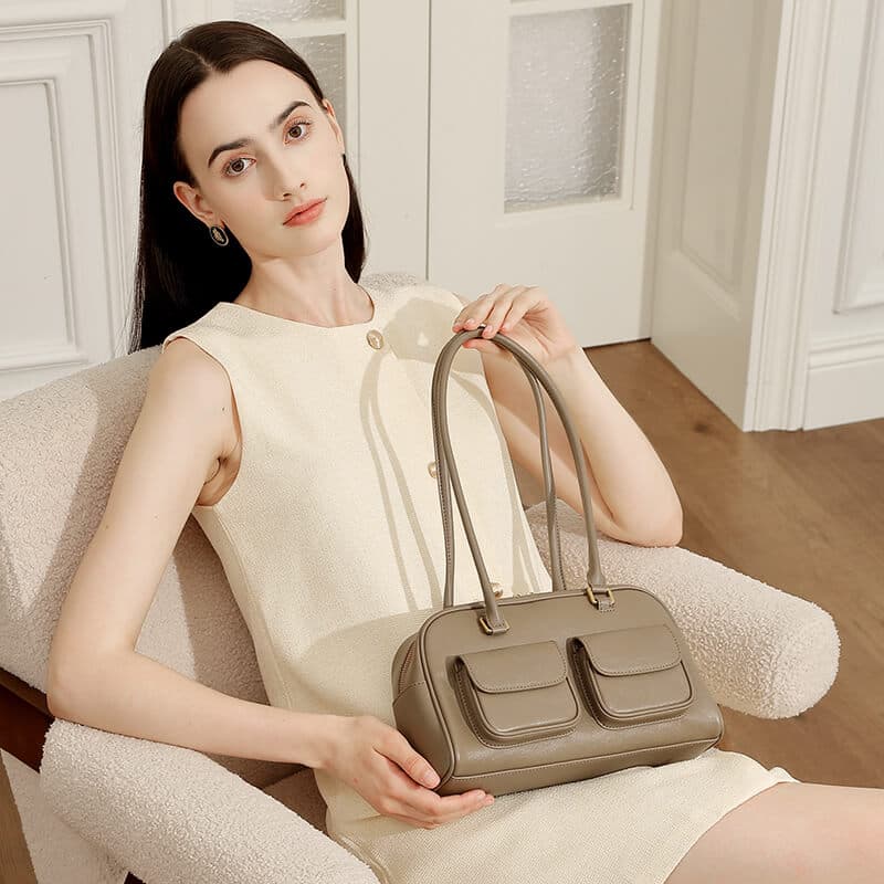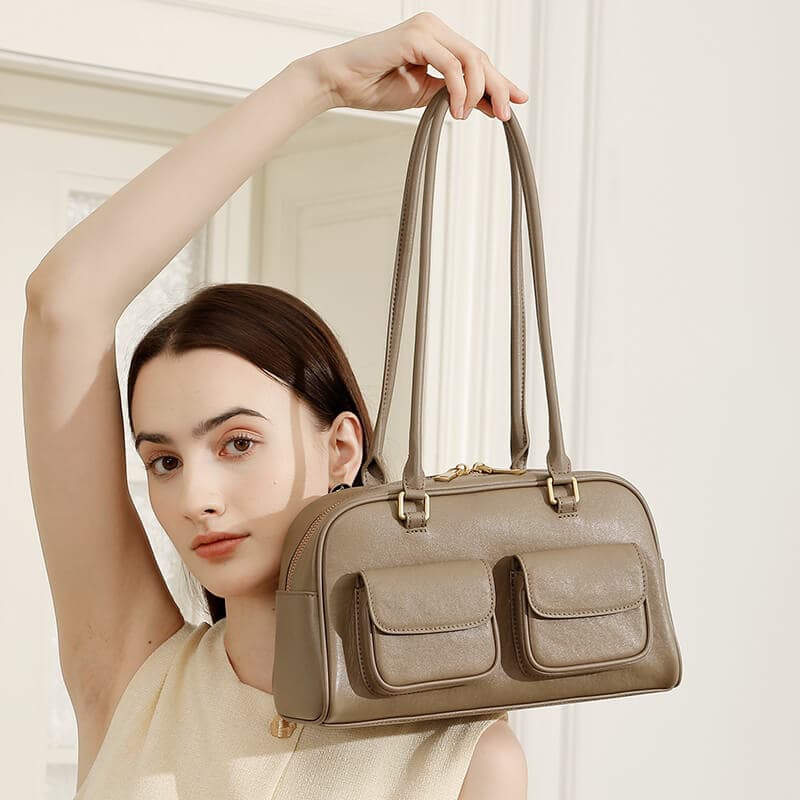& Free ShippingElevate your style with the Fashion Khaki Calfskin Boston Bowling Shoulder Bag—crafted from premium calfskin for luxurious softness and durability. Its versatile khaki hue complements any outfit, while the spacious bowling silhouette offers effortless organization. Perfect for work or weekend adventures, this timeless piece blends elegance with functionality.