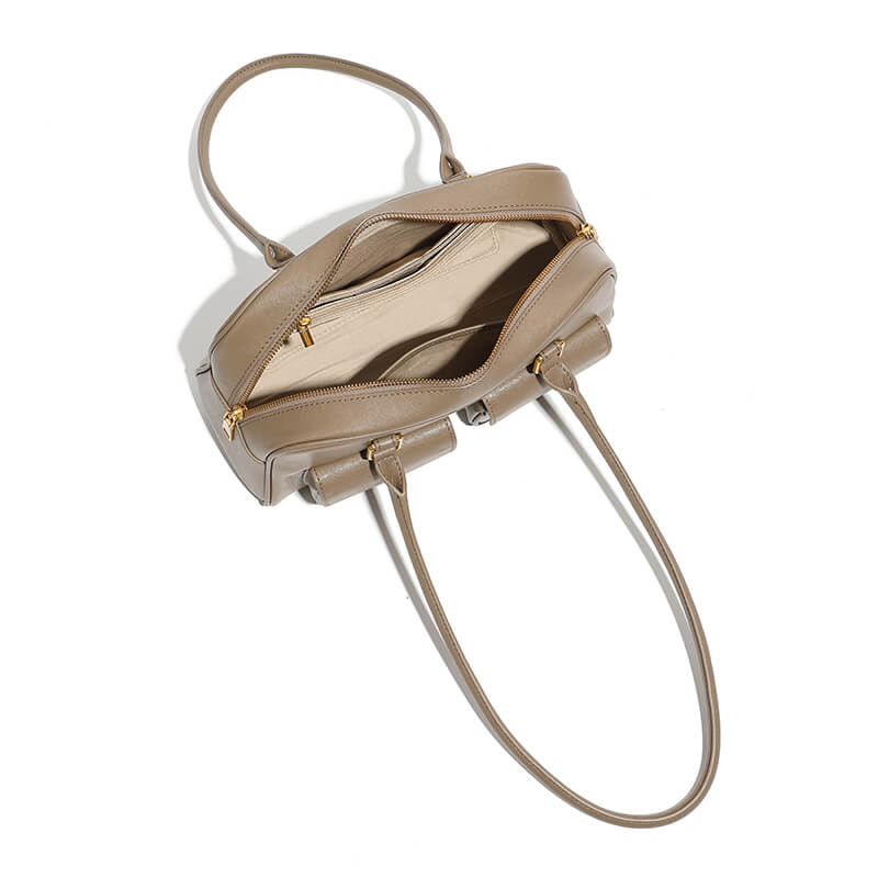 Fashion Khaki Calfskin Boston Bowling Shouder Bags