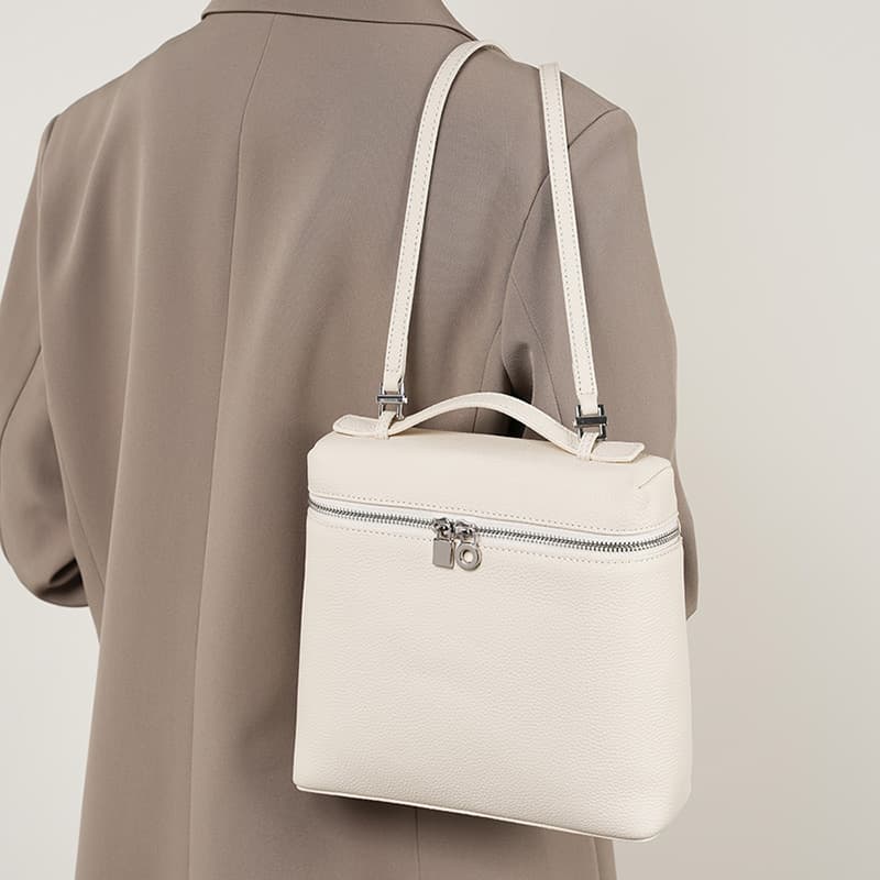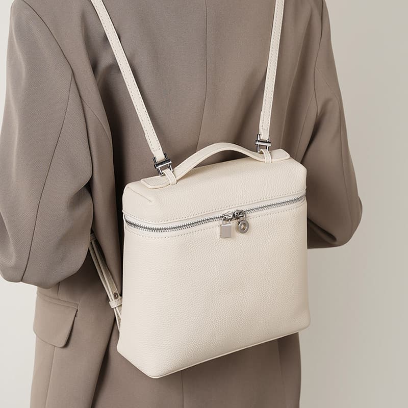 The Chic Off White Full-Grain Cow Leather Piana Leisure Backpack combines luxury with practicality.