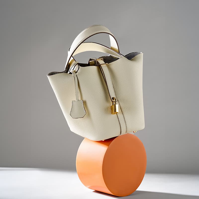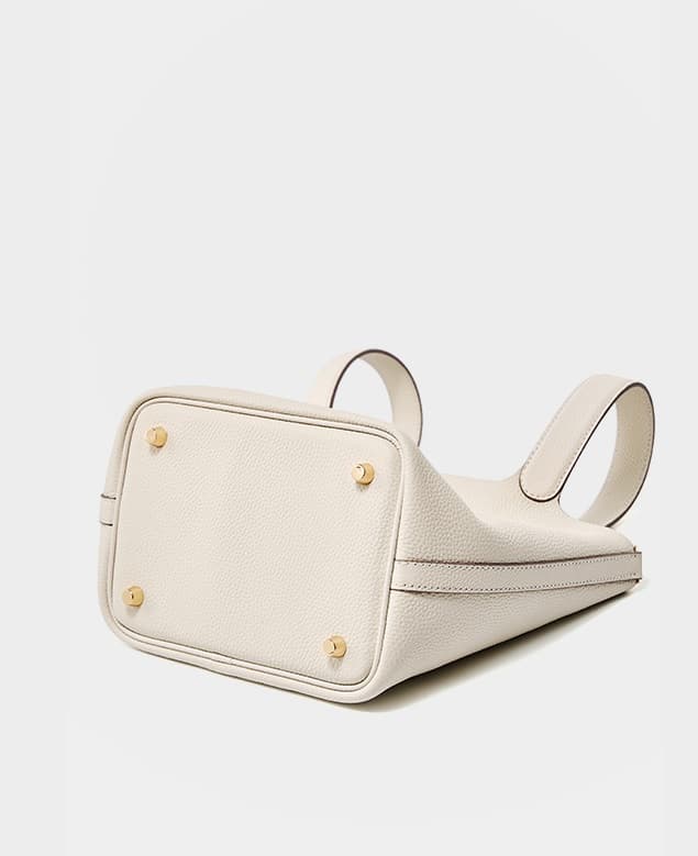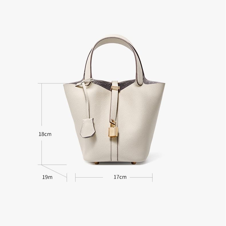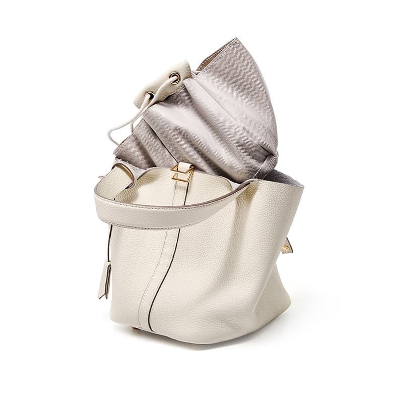 Off-White Litchi Textured Cow Leather Basket Bucket Bags