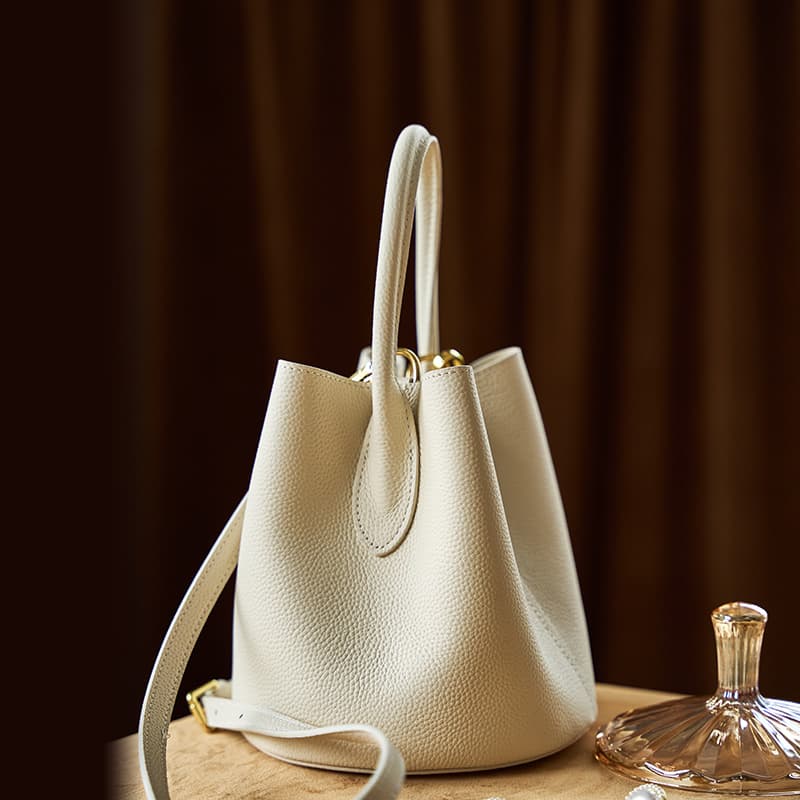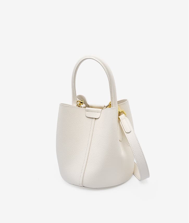 Women Off-White Full-Grain Cow Leather Bucket Bags